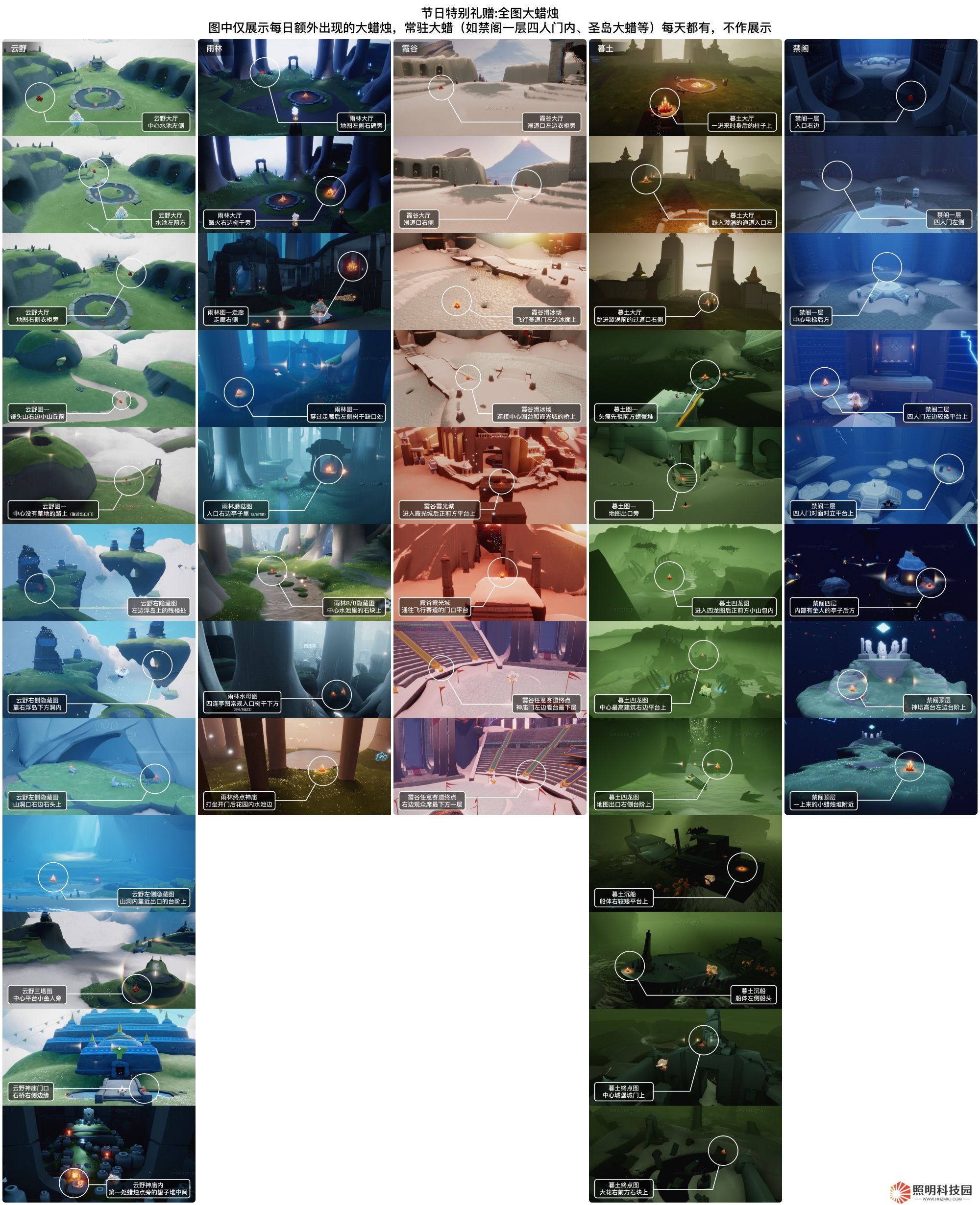 光遇今天的大蠟燭刷新在了云野雨林霞谷墓土禁閣這5張地圖,那么大家知道4.3每堆大蠟燭的具體位置在哪里嗎?下面為大家帶來光遇4月2日大蠟燭位置的具體內容,感興趣的玩家們千萬不要錯過哦!